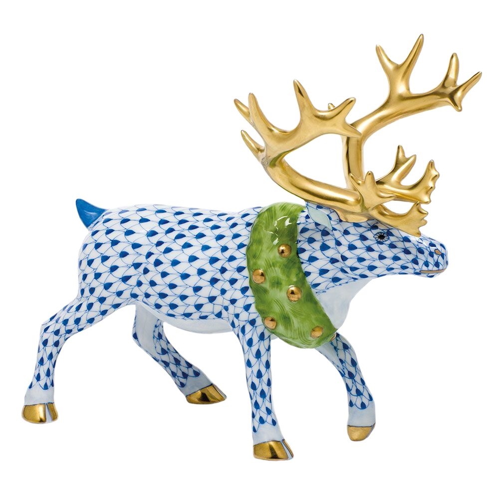Herend Holiday Reindeer Figurine Sapphire Fishnet
