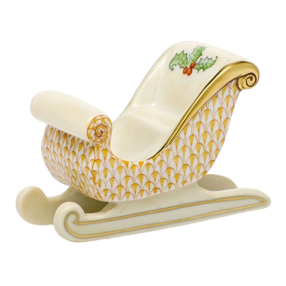 Herend Holiday Sleigh Figurine Butterscotch Fishnet